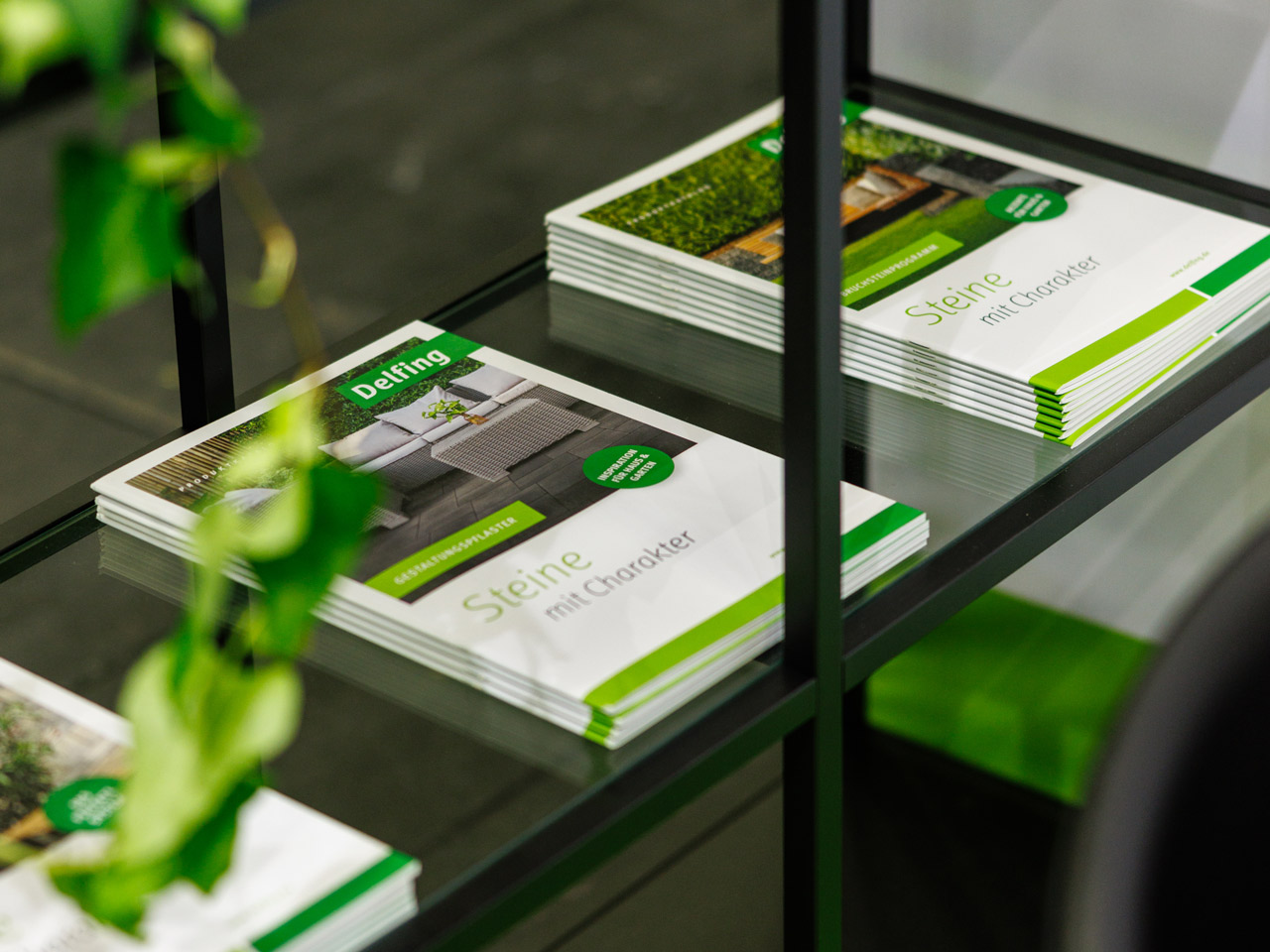 Der von uns neu gestaltete und realisierte Gesamtkatalog bietet eine großen Auswahl an Gestaltungspflastern, Schalungssteinen und Funktionspflastern in unterschiedlichen Formaten, Oberflächen und Farben. Für den neuen Katalog entwickelten wir auch die neue frische Delfing Bildsprache und kümmerten uns um die Produktfotografie der Produktneuheiten. Neben dem neuen Produktkatalog realisierten wir Einzelkataloge, die Geschäftsausstattung, Beschilderungen, das Design der bestehenden Fahrzeugflotte sowie Werbemittel am POS.