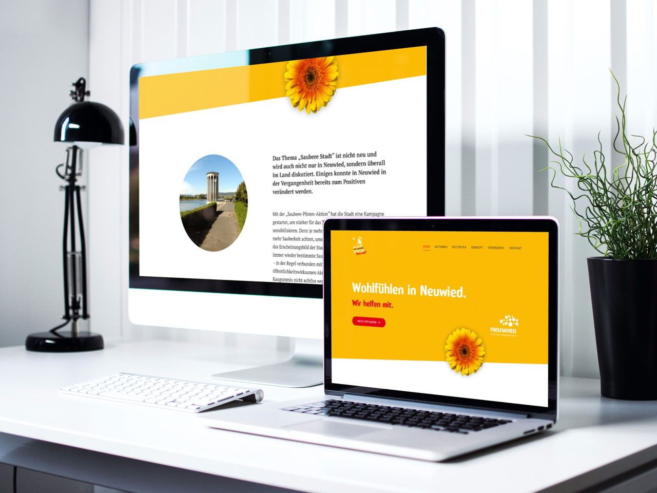 Die von schmidtchen & partner entwickelte Kampagne „Neuwied auf sauberen Pfoten“ sensibilisiert schon seit einigen Jahren die Bürgerinnen und Bürger zu dem Thema „Saubere Stadt“ und will so ein neues Bewusstsein schaffen. Das Credo der Aktion lautet „lieber mit einem Augenzwinkern als mit erhobenem Zeigefinger“.